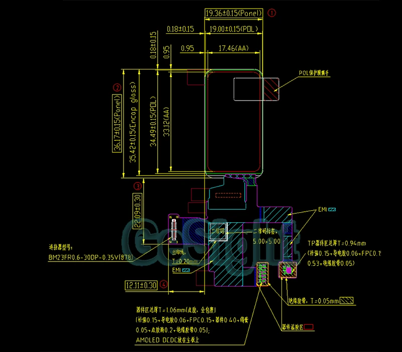 Touch data is handled through the built-in ZTW622 touch IC, communicating to the host via I2C, with dedicated TP_INT and TP_RST signals for stable event reporting and reliable recovery. For smartwatch and wearable controls, this on-cell architecture supports responsive taps and swipes while simplifying system design: you get a compact display + touch solution without needing an additional external touch module or extra bonding steps.