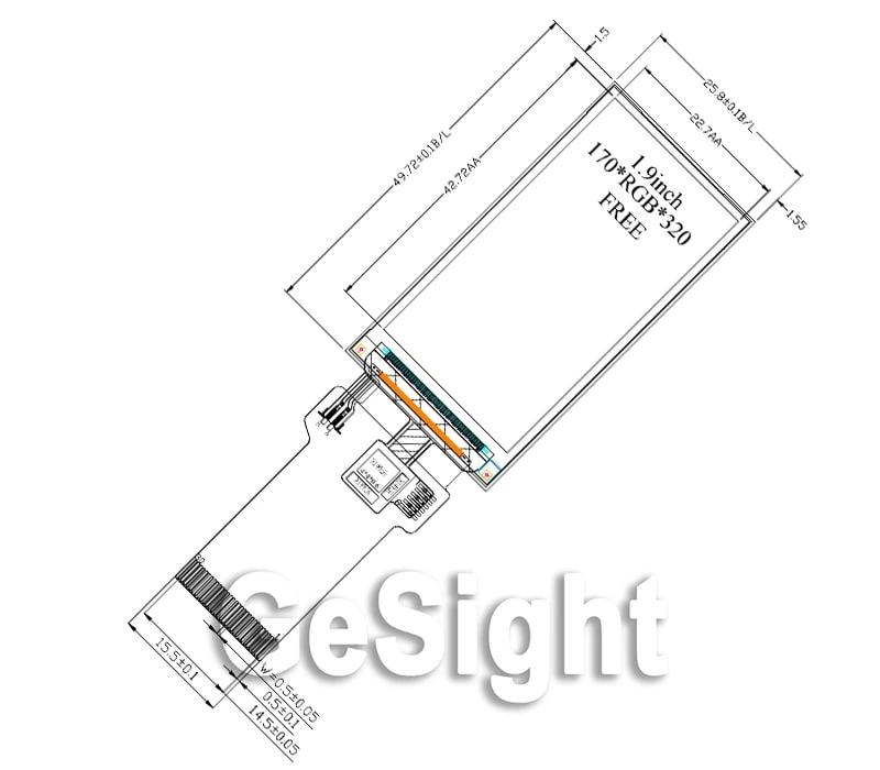 The 1.9-inch TFT-LCD Display delivers clear, practical visuals with a 170×320 (RGB) resolution and 262K colors, making it a solid fit for compact embedded interfaces. With 4-SPI / 8-bit 8080 interface options and an ultra-slim 25.8 × 49.72 × 1.43 mm outline, this module supports efficient integration in space-sensitive designs. It features an IPS, transmissive, normally black panel with a 60 Hz frame rate, wide 80°/80°/80°/80° viewing angles (CR ≥ 10), and typical 330 cd/m²