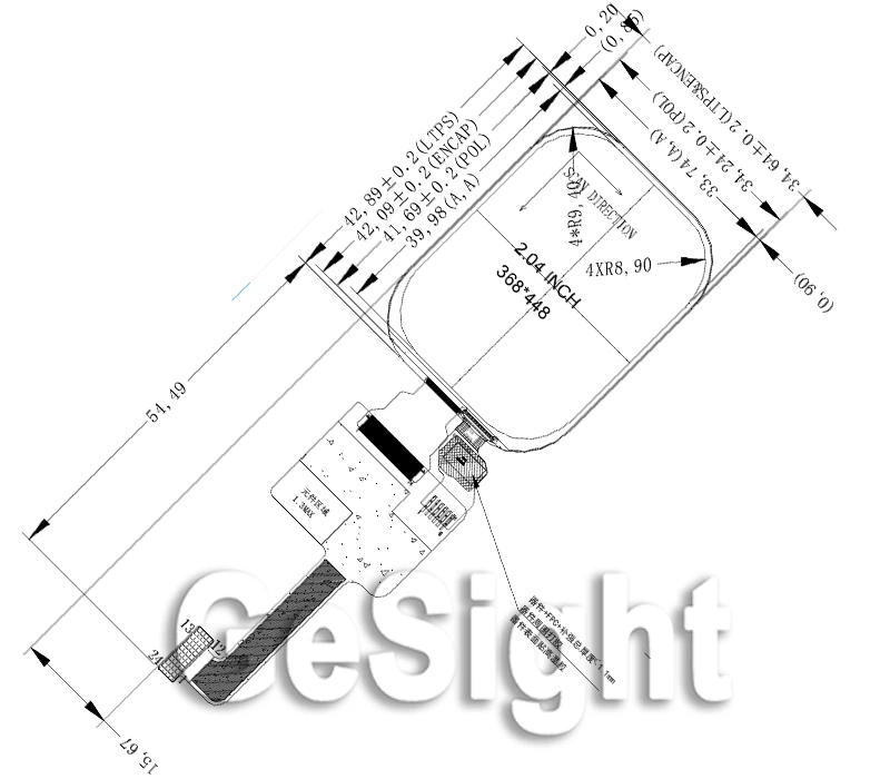 This on-cell touch AMOLED module is engineered for clean, space-saving integration in smartwatch and wearable enclosures. The front side features a rounded-corner active window suited to watch-face layouts, while the back side shows a compact FPC layout designed to reduce internal footprint and simplify assembly. The integrated touch structure keeps the module thin and streamlined, helping product teams maintain a slim device profile while ensuring stable electrical connection to the mainboard.