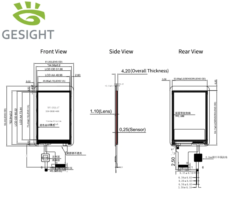 Gesight offers external capacitive touch (CTP) support for the PL35014C30 3.5-inch 320×480 SPI TFT-LCD module, enabling a more intuitive user interface for embedded products. The touch solution uses a dedicated CTP connection with 3.3V power, I²C (SCL/SDA) communication, and INT/RST signals, making it easy to integrate touch functionality into your system design.